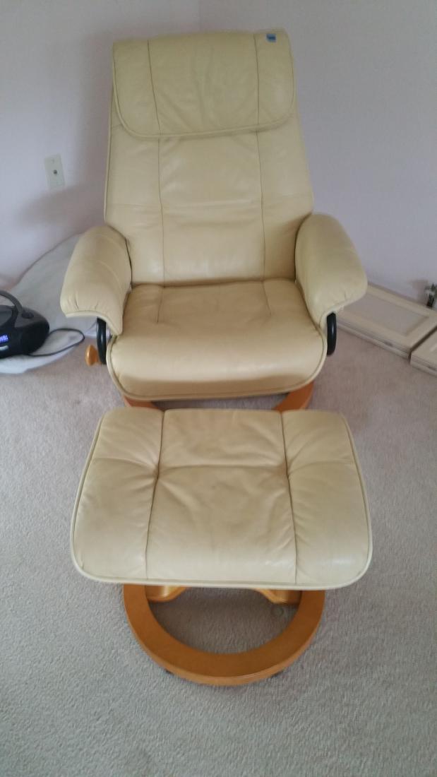 Relax in comfort with a leathersoft recliner chair and ottoman set.